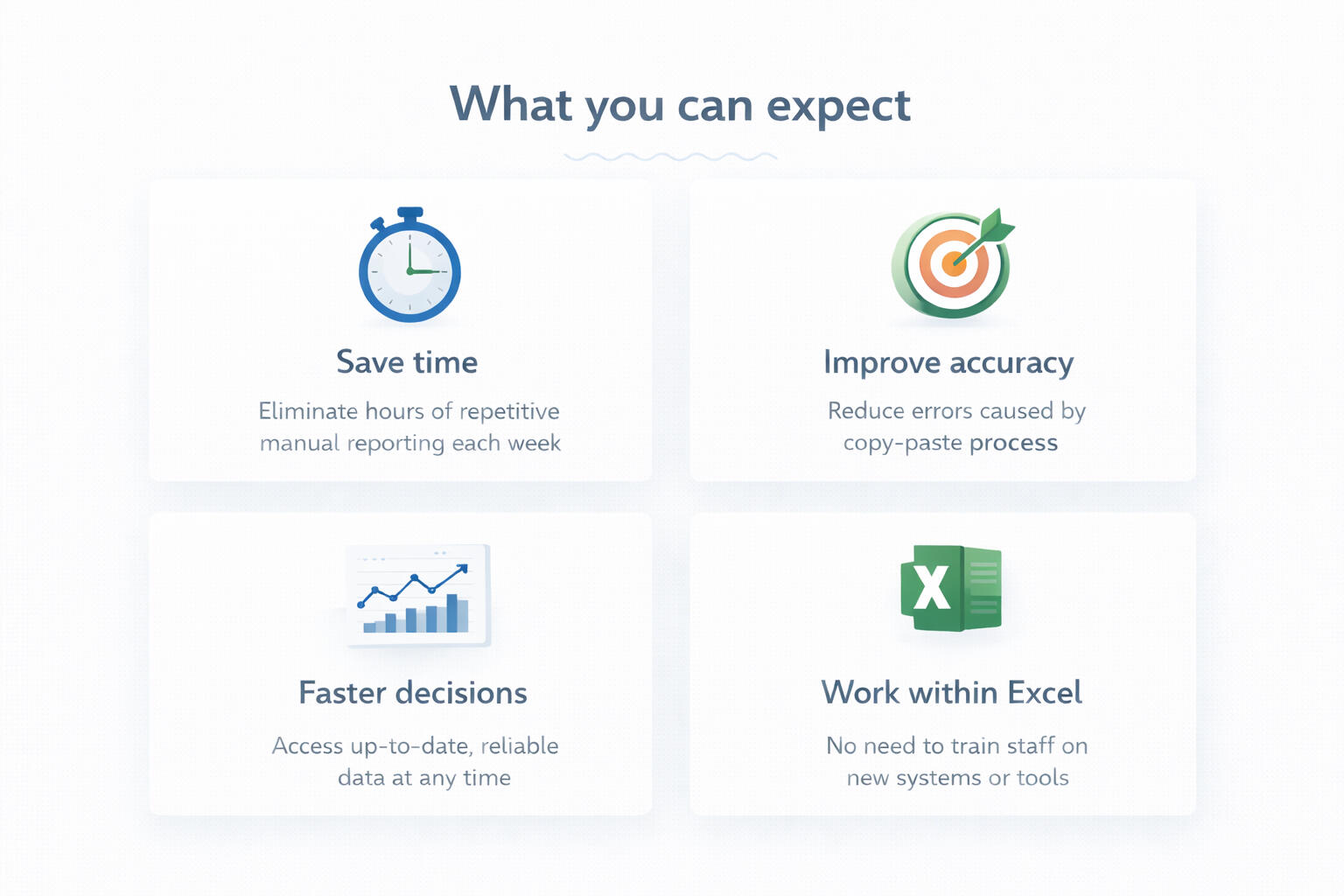 We create structured, automated Excel systems that remove manual processes and provide clear,