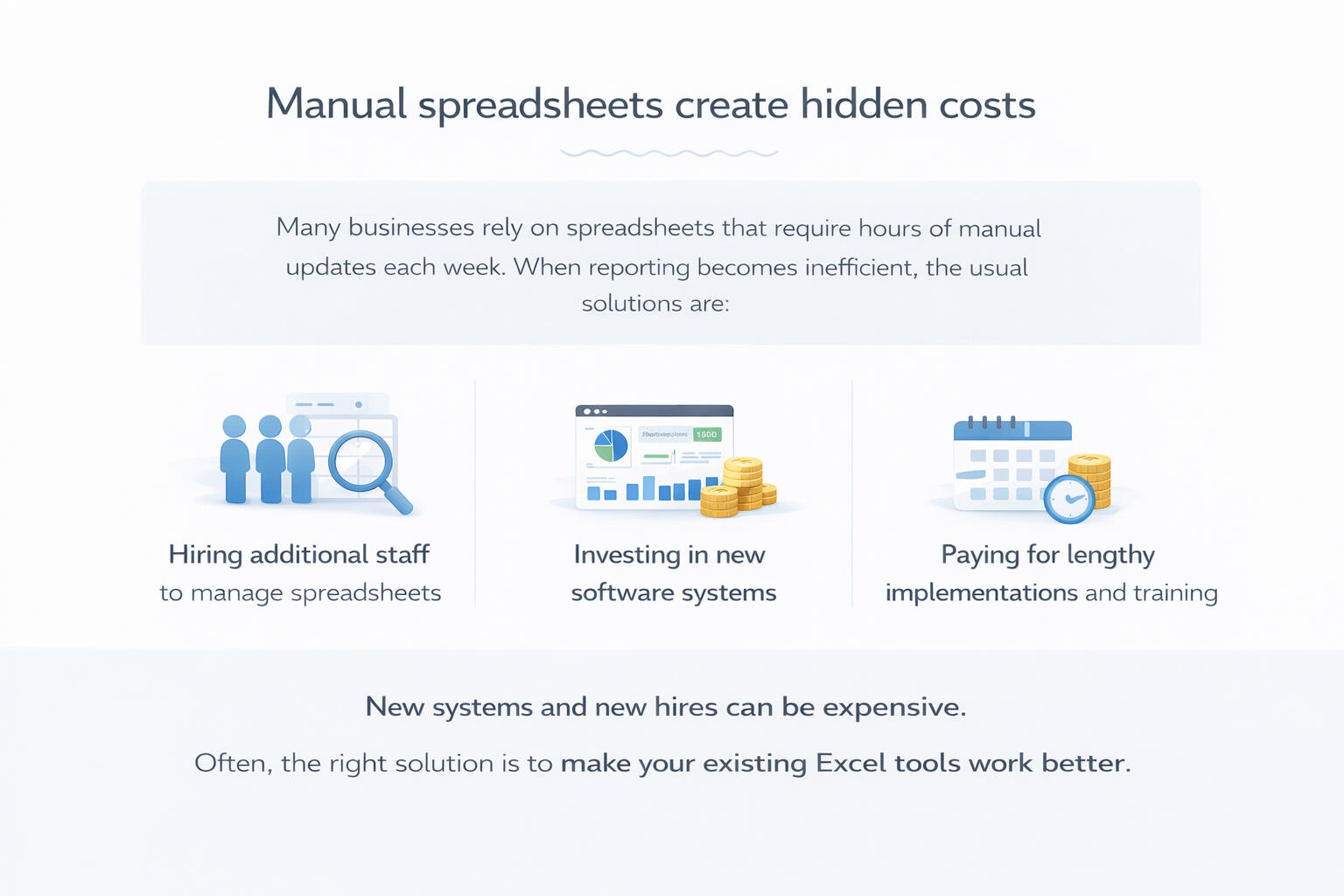 We create structured, automated Excel systems that remove manual processes and provide clear,
