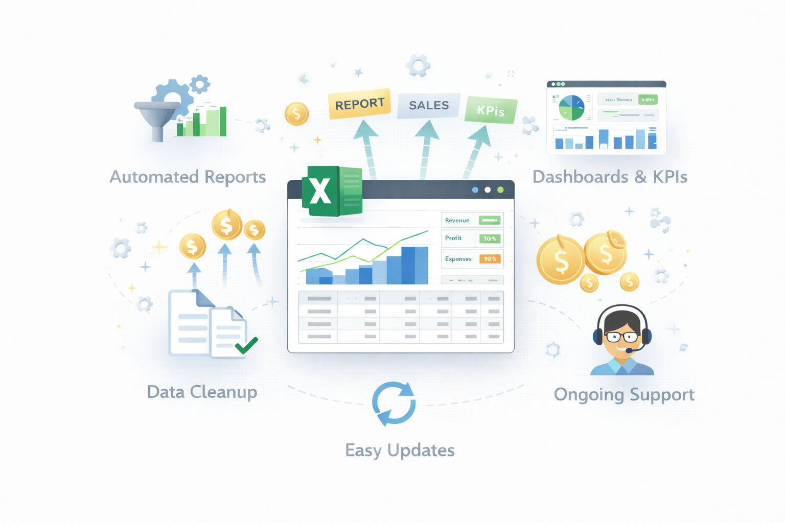 We build automated Excel reports and dashboards that save time, reduce costs,
